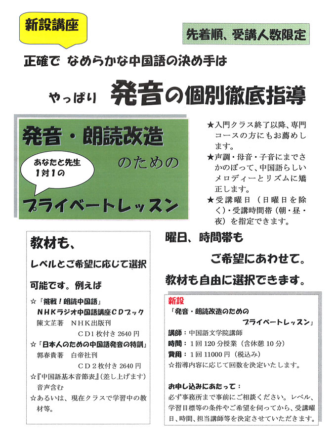 >発音・朗読改造のためのプライベートレッスン